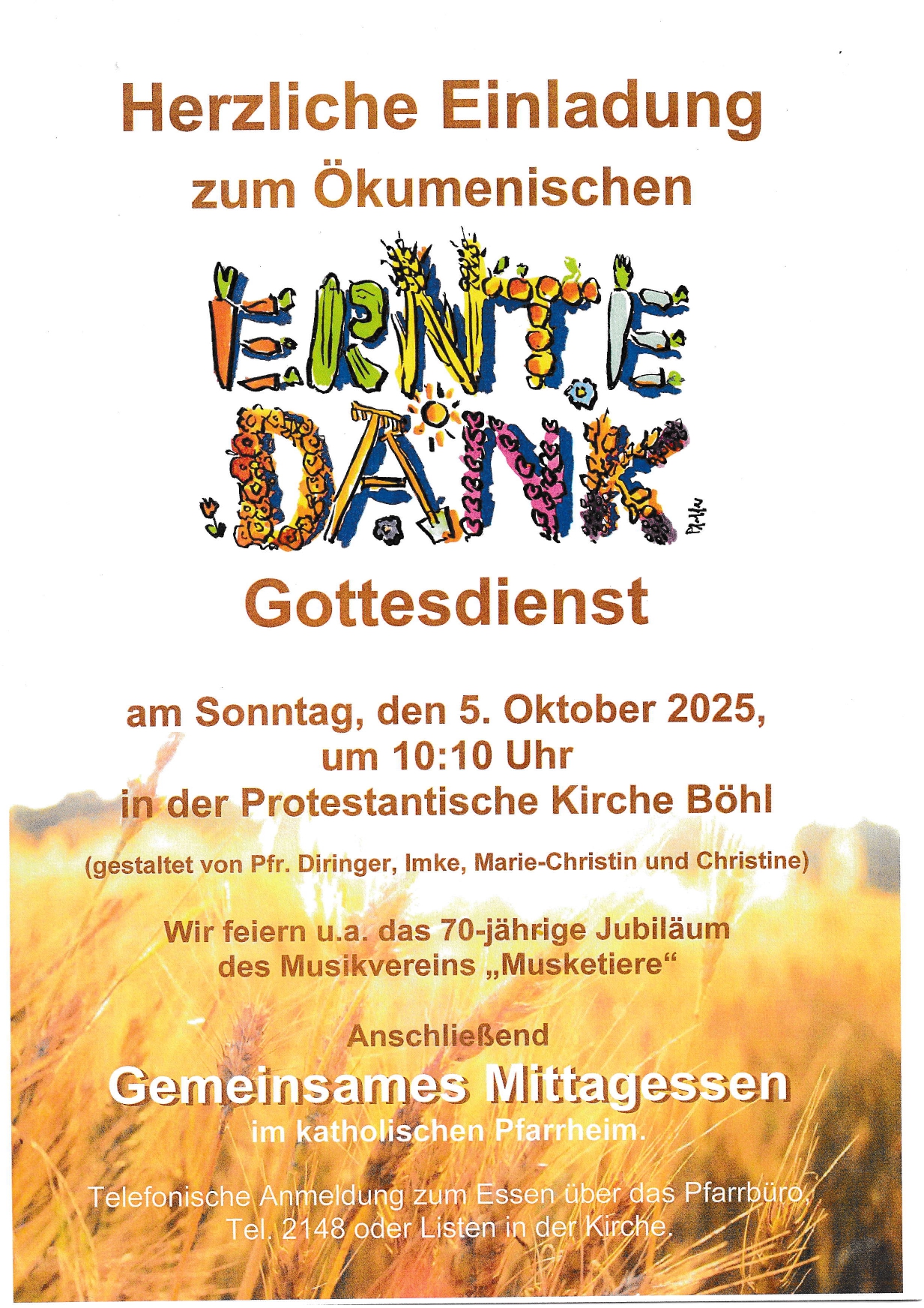 Im Anschluss laden wir herzlich ein zum gemeinsamen Mittagessen im katholischen Pfarrheim.
